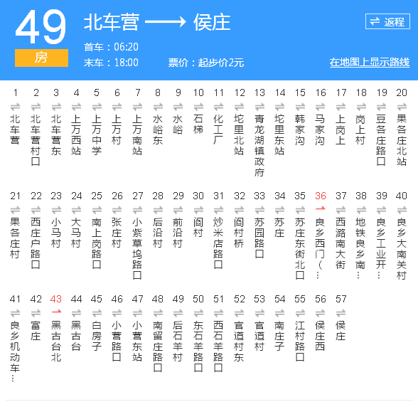 良乡西门→北车营6:30、7:20、9:45、11:25、13:25、15:55、17:25