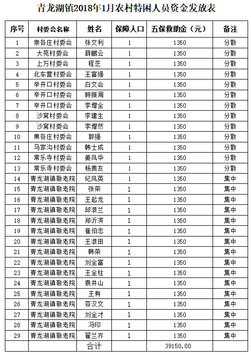 mobile38365365镇2018年1月农村特困人员资金发放表