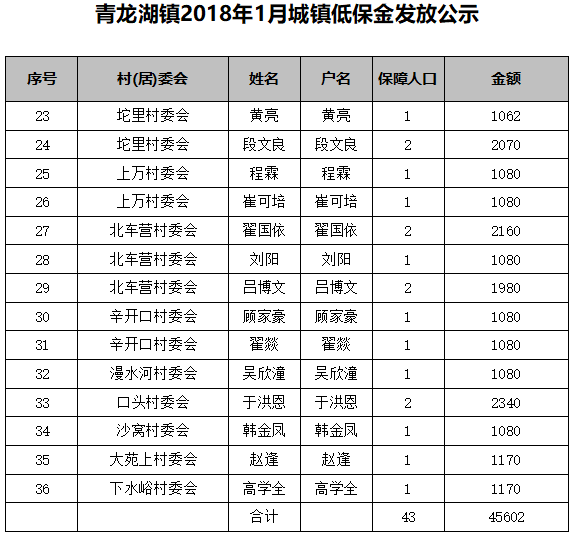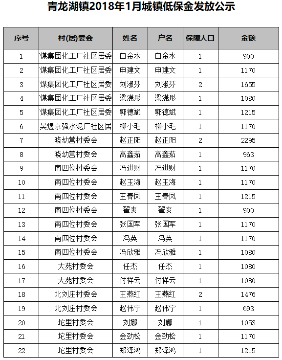 mobile38365365镇2018年1月城镇低保金发放公示